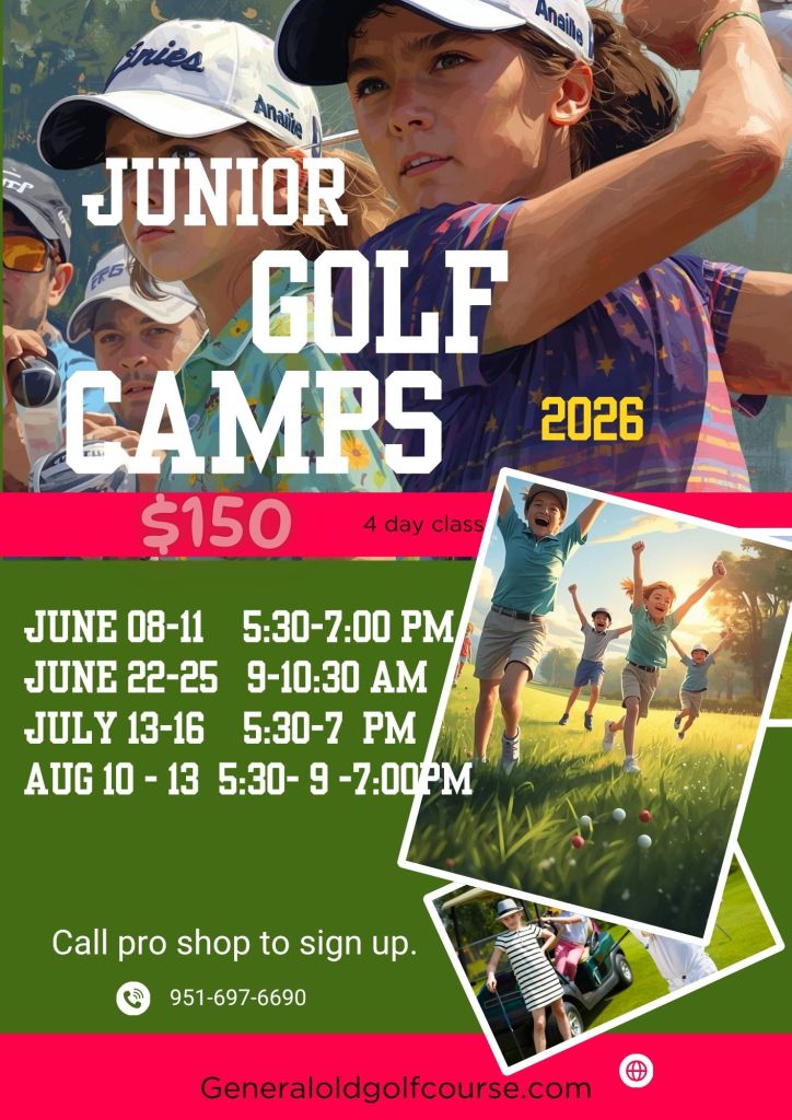 General Old will be conducting Junior Golf Camps this Summer break June – August The Junior Camps are open to beginner golfers ages 7-17. Camps will be held Monday through Thursday with Golf Professional
